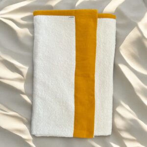 • Кърпа за плаж от памук и лен с борд Жълт шафран